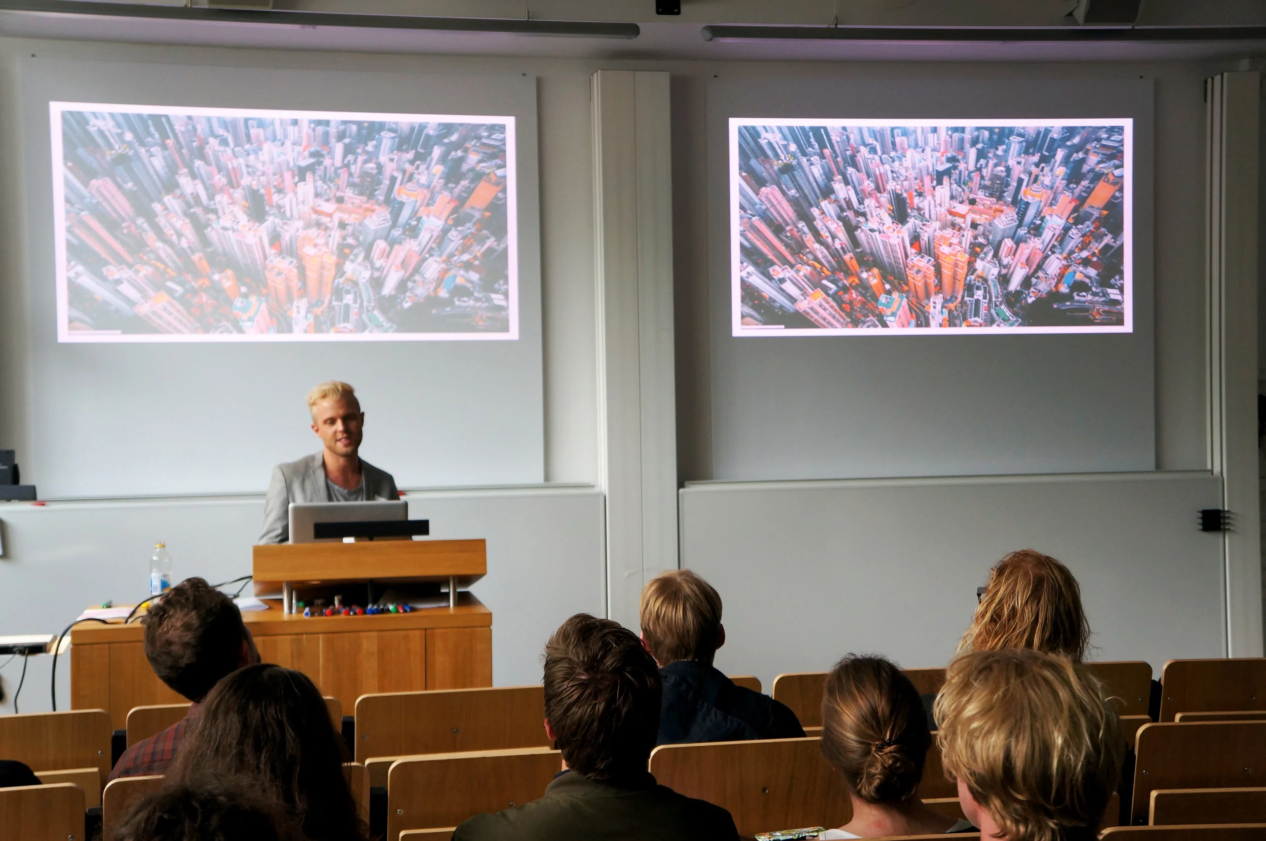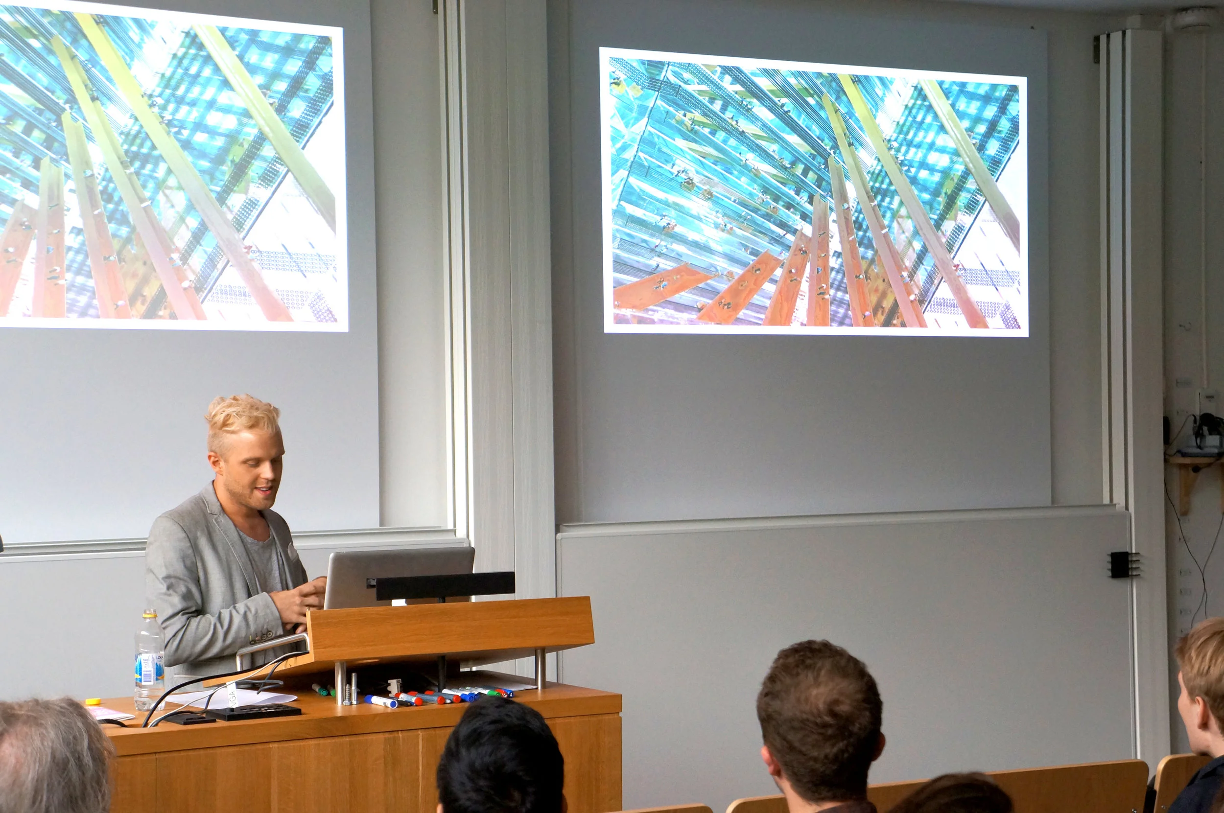 Oscar was introduced by the Director of the School of Architecture at Lund University, Christer Malmström, and gave a 40 minute lecture for faculty and students on the role of large-scale interiors in defining contemporary urbanity, as well as a display of his current works and his Master Thesis project In Is the New Out.